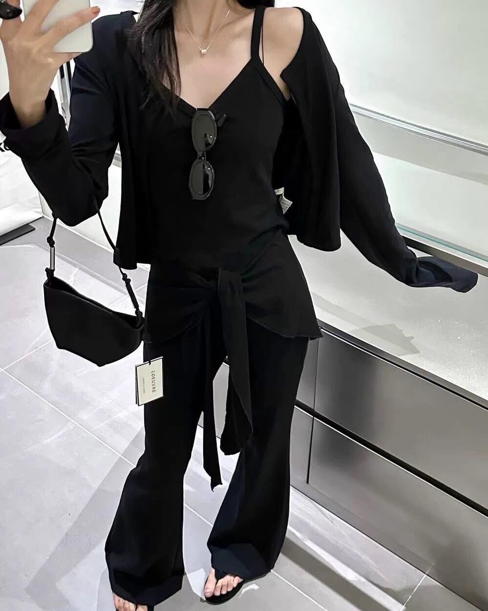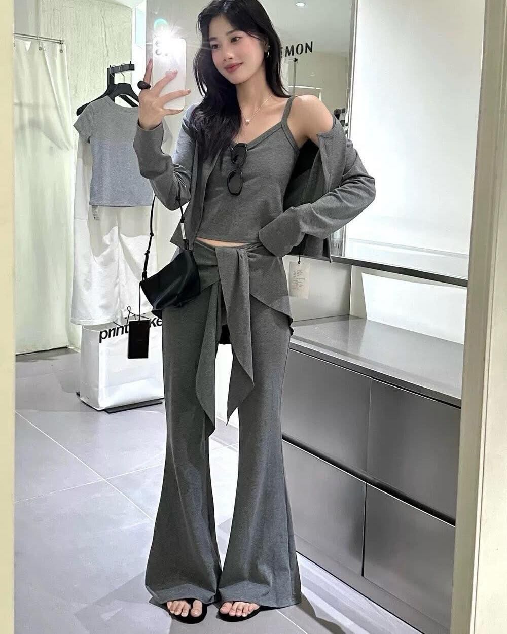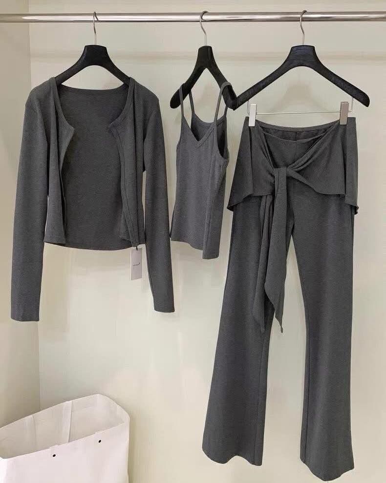 【俏皮又簡約外套背心+綁腰喇叭褲3件組】(現貨)
