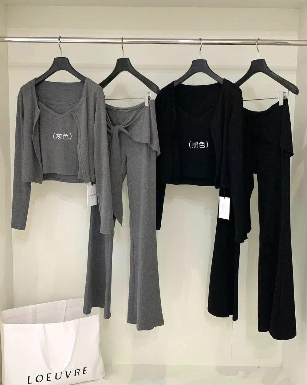 外套+背心+激瘦假兩件微喇叭褲