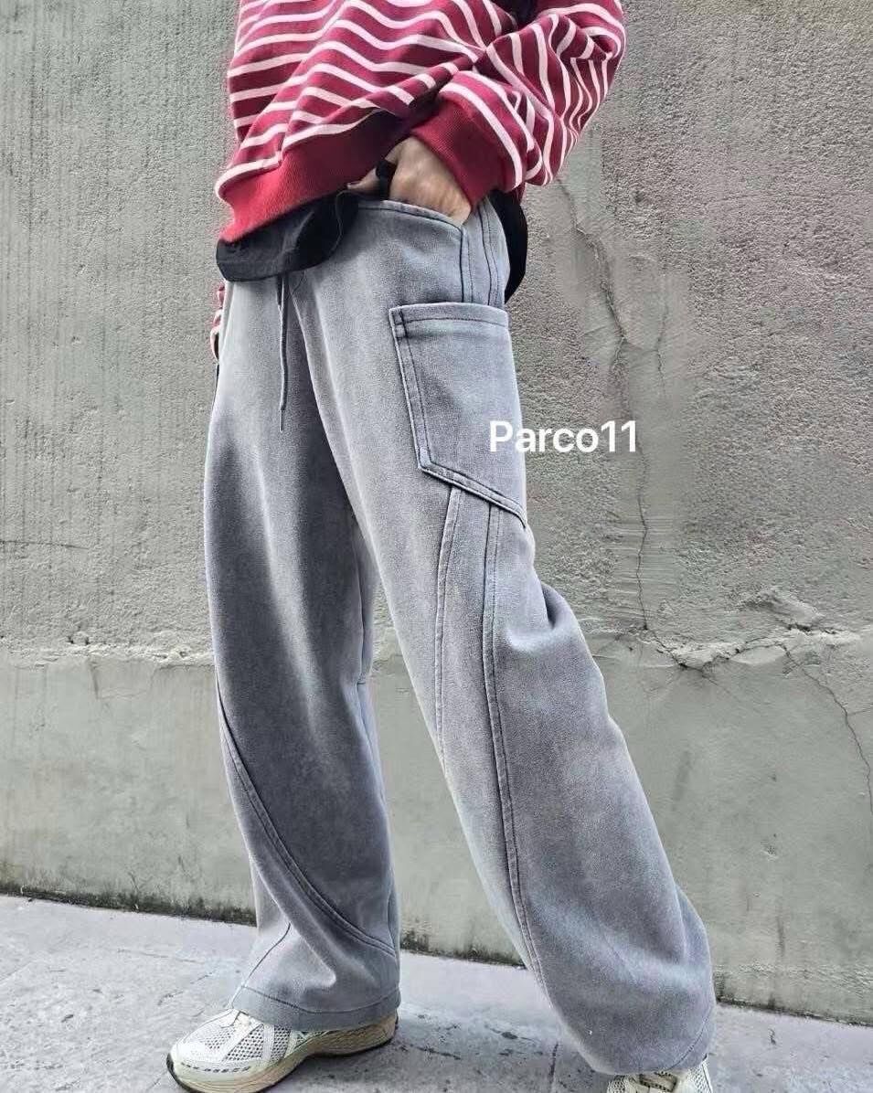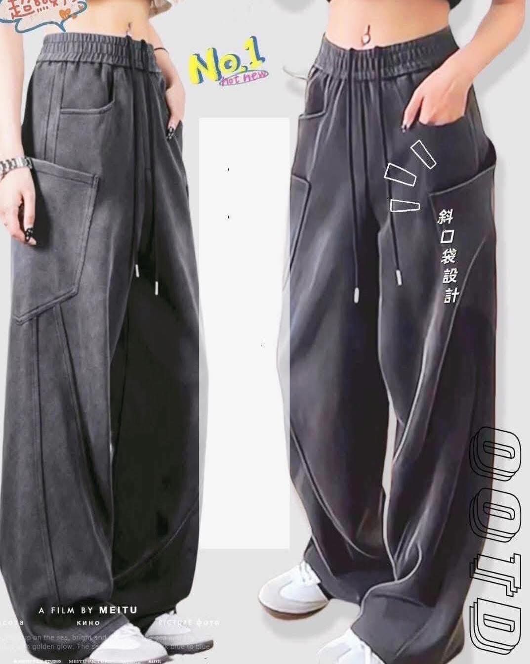【時髦運動風水洗剪接造型寬褲】(預購)