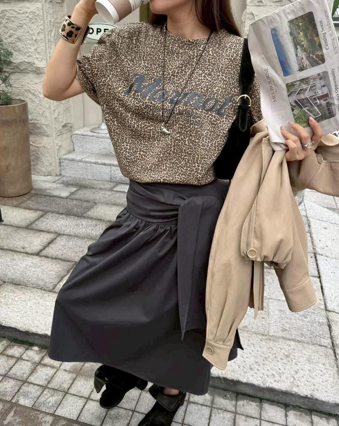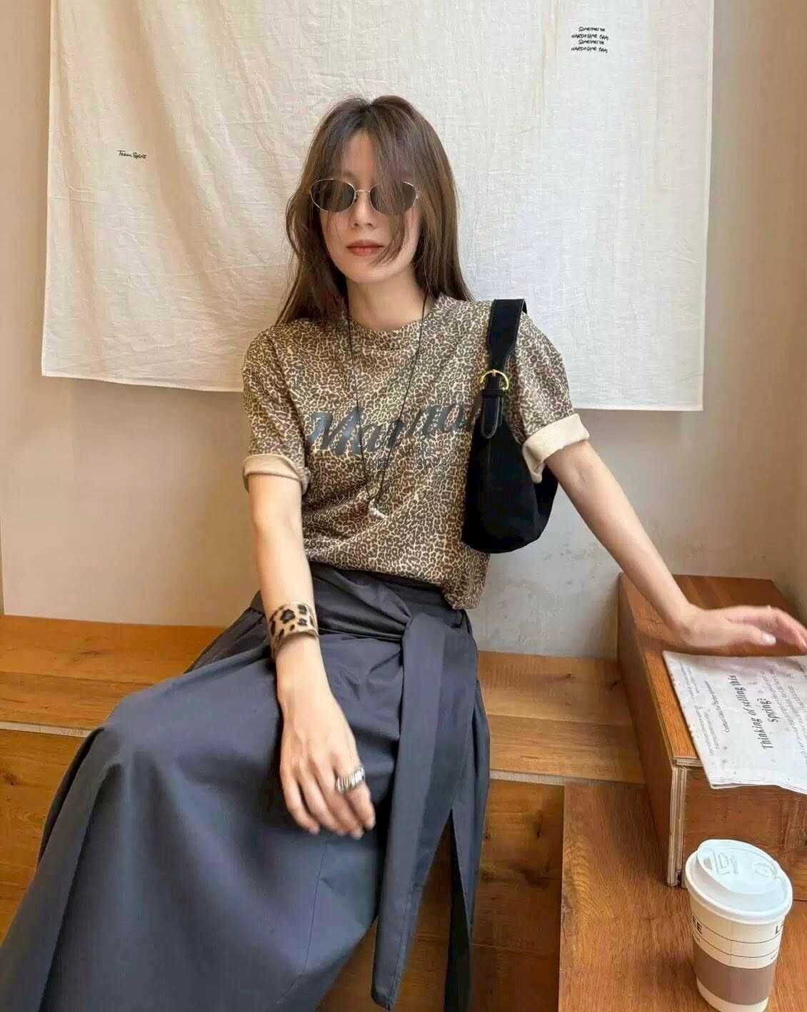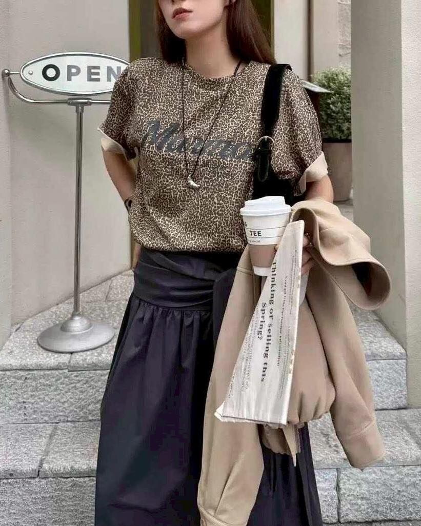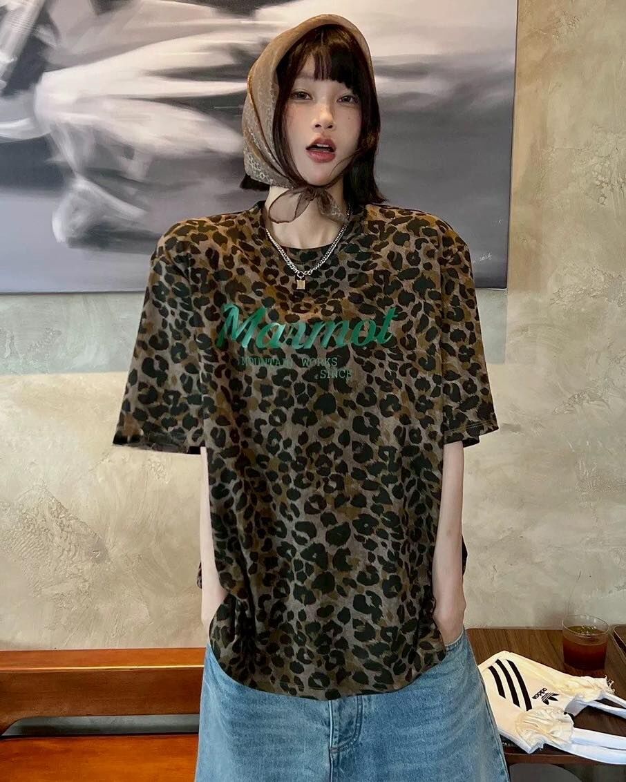 質感超好的豹紋字母設計棉 tee