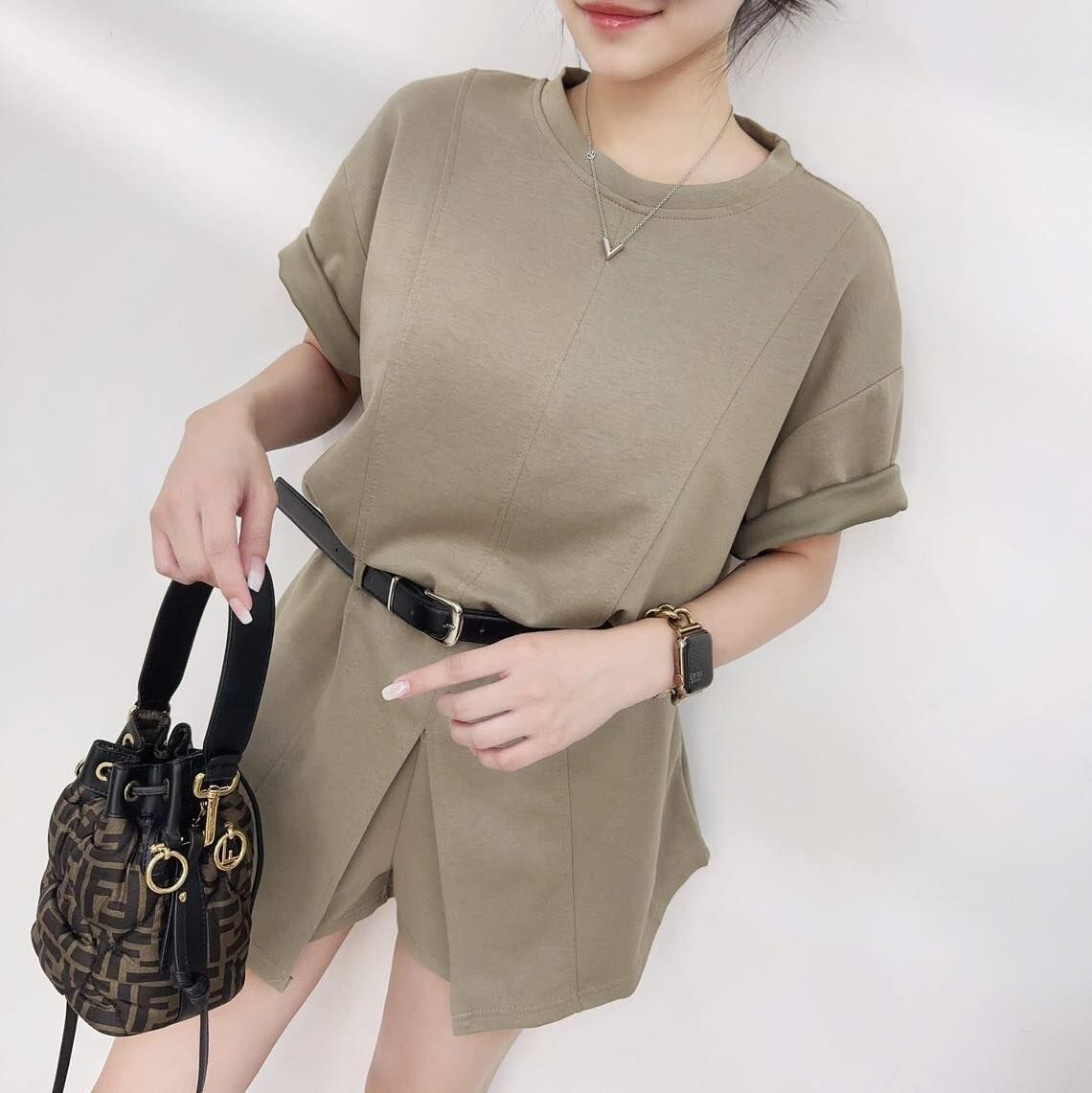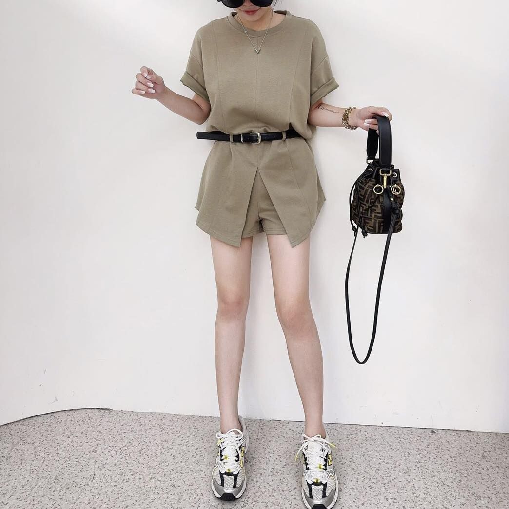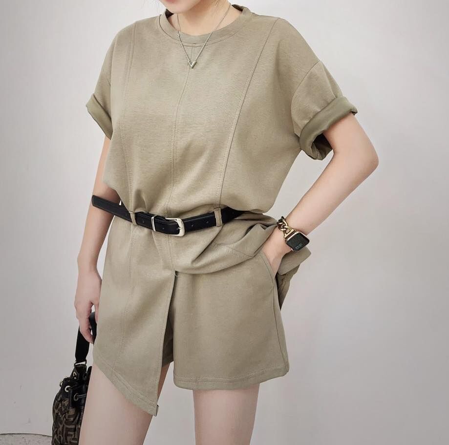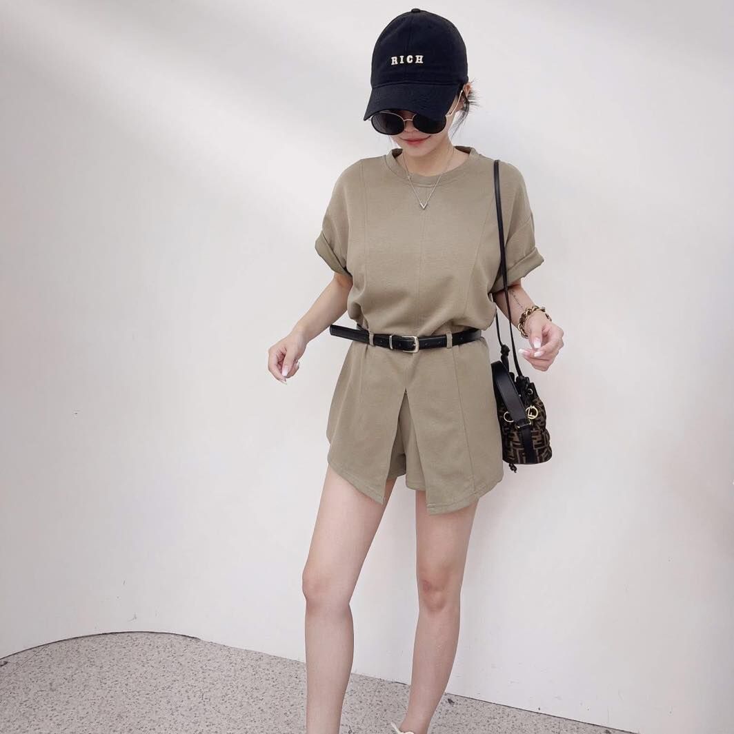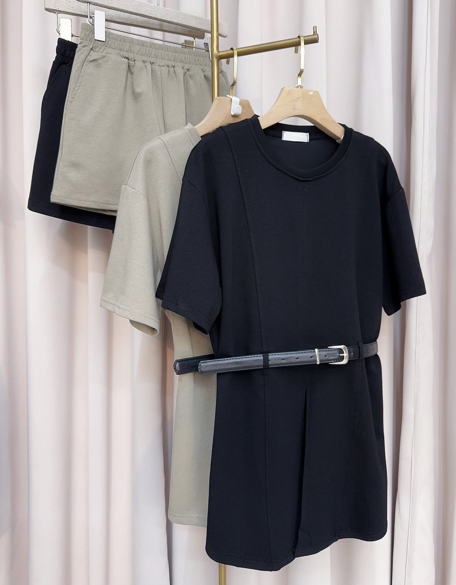 顯瘦上衣+鬆緊腰口袋短褲+皮帶