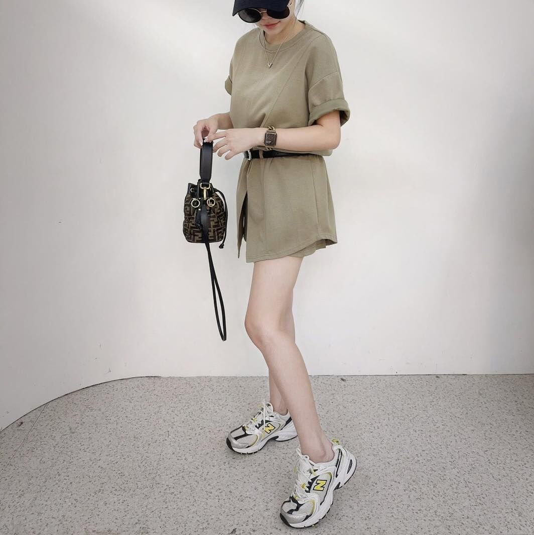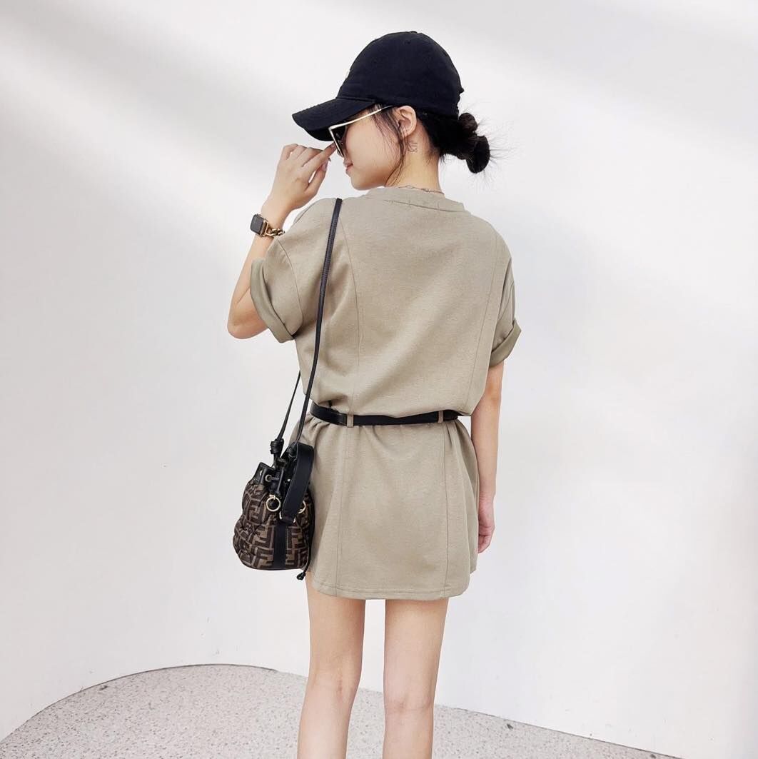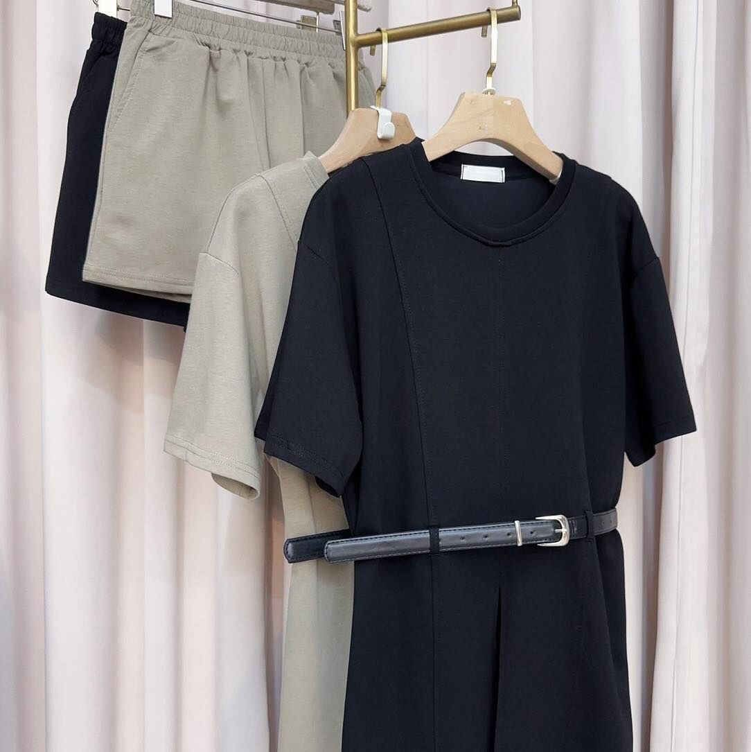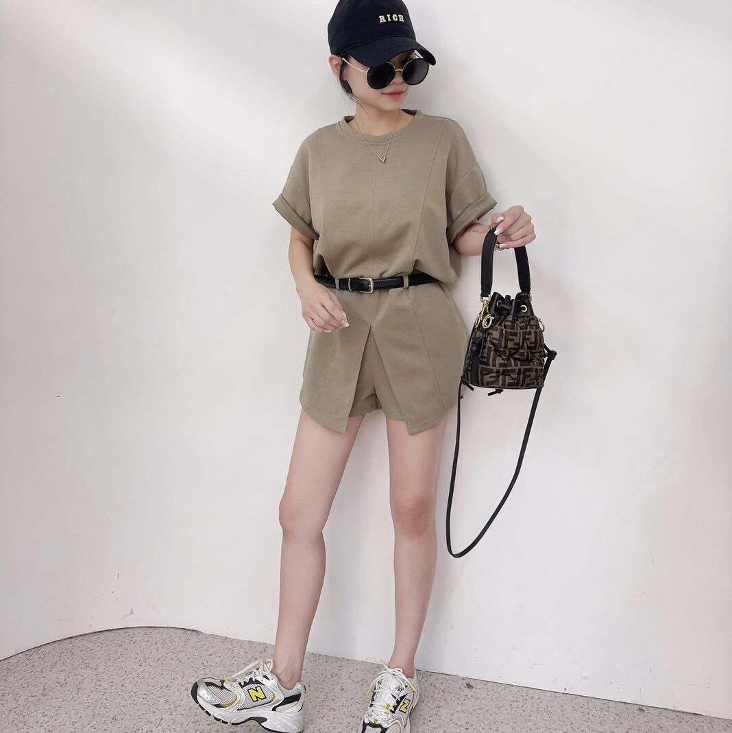 顯瘦上衣+鬆緊腰口袋短褲+皮帶